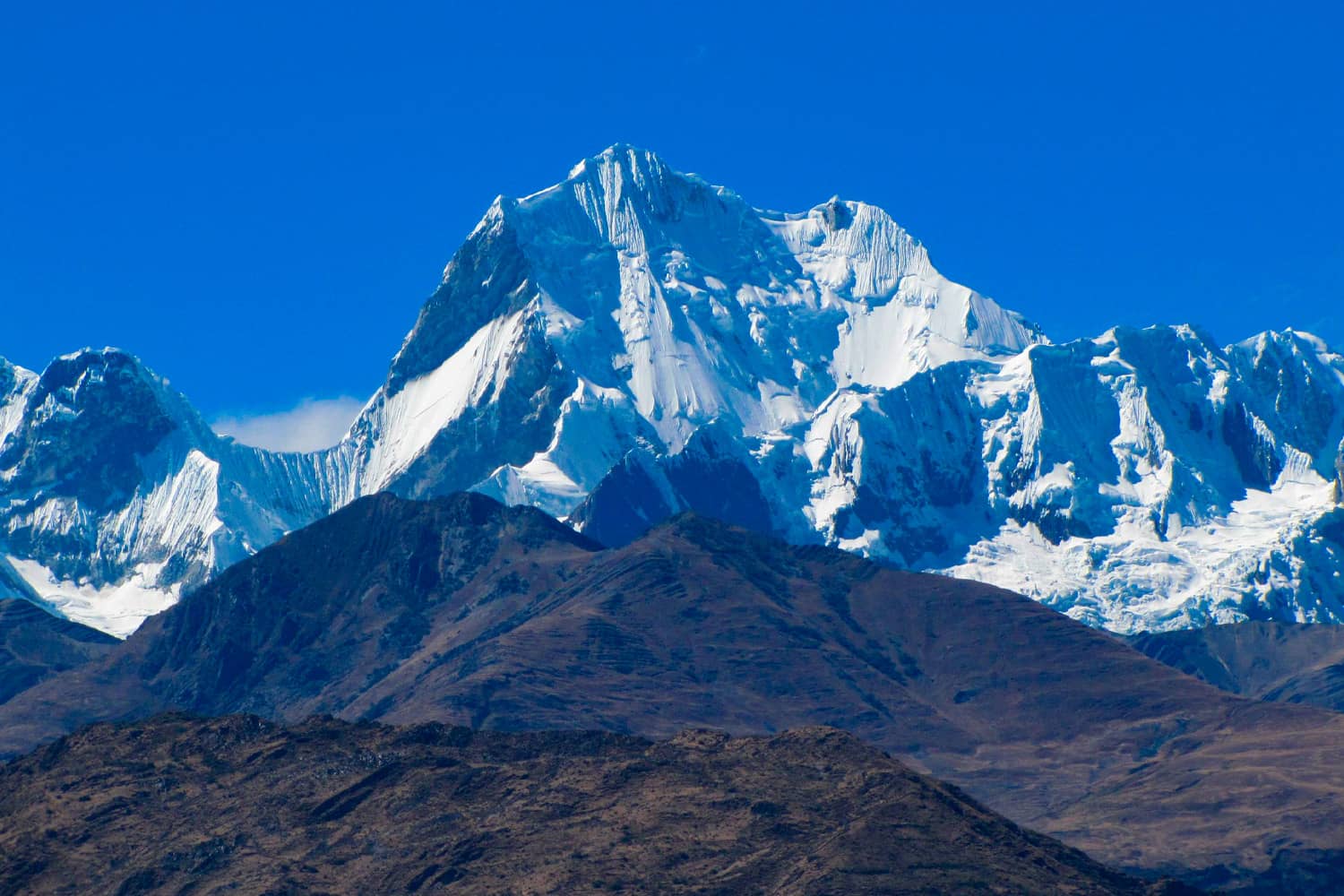 You’ll take in stunning views of the sharply ridged peaks, including the remarkable “perfect” pyramid of Alpamayo, with its striking ice fluting, and Huascarán, the highest peak in Peru.